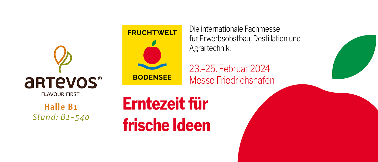 Auch Artevos ist mit einem Messestand vor Ort und präsentiert Obstneuheiten mit Verkostung und berät Sie im Erfahrungsaustausch zur Sortenauswahl und zu Erziehungssystemen, Pflanzenschutz und Anbautipps.